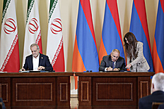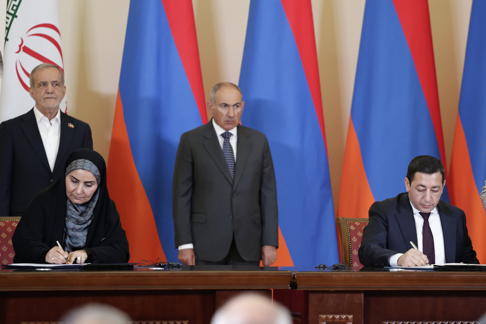 Затем в присутствии лидеров двух стран состоялась церемония подписания документов между Арменией и Ираном.
