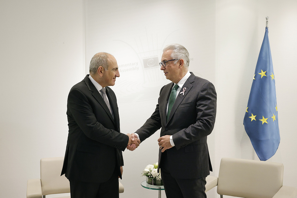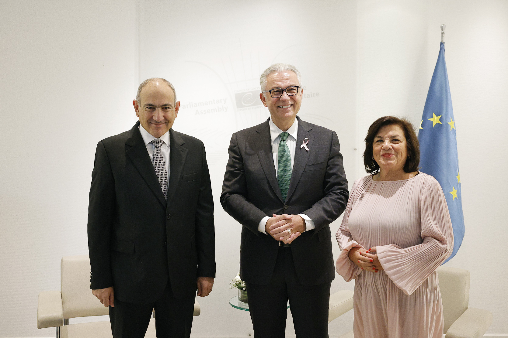 Премьер-министр Никол Пашинян во Дворце Европы в Страсбурге провел встречу с председателем Парламентской ассамблеи Совета Европы Теодоросом Русопулосом.