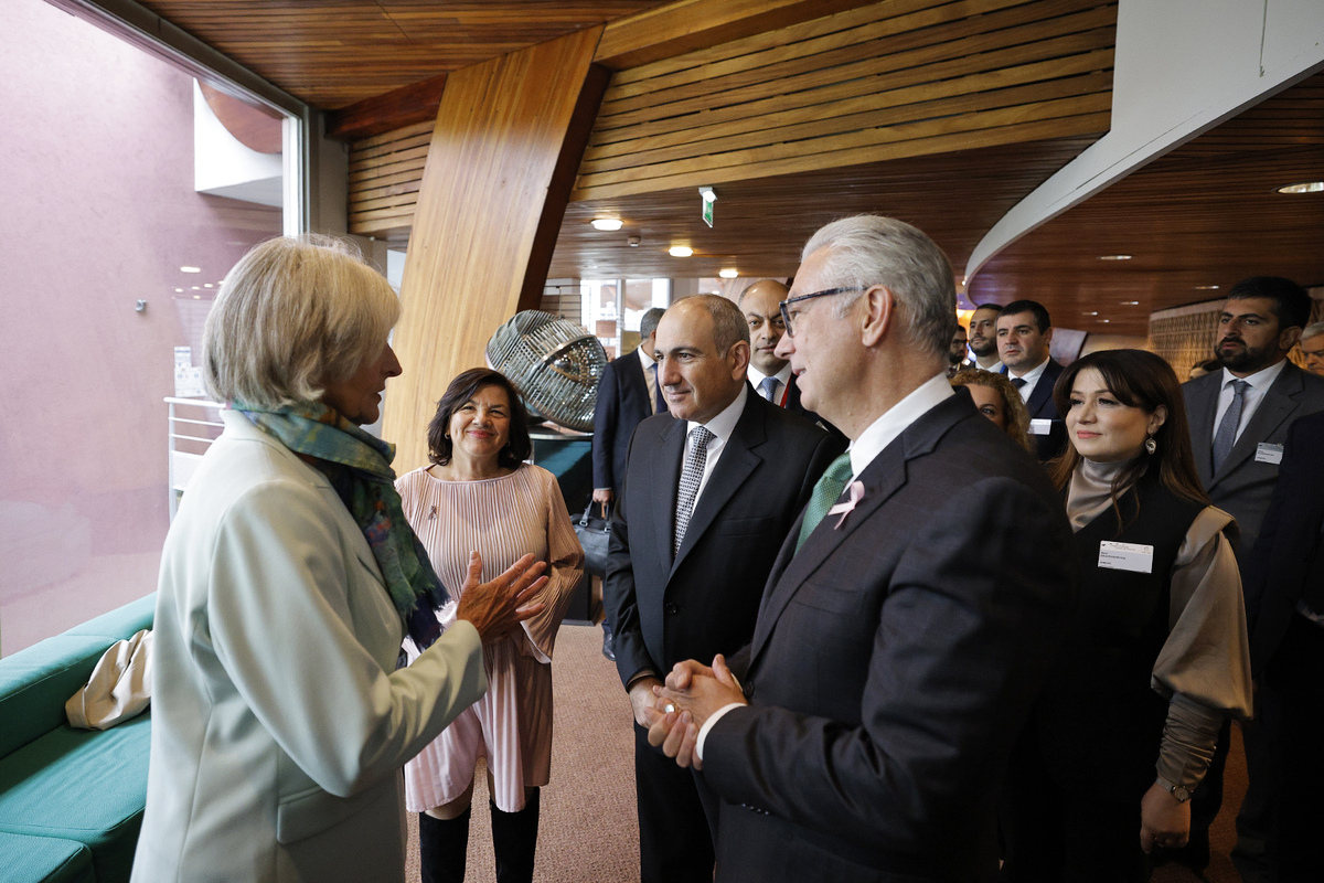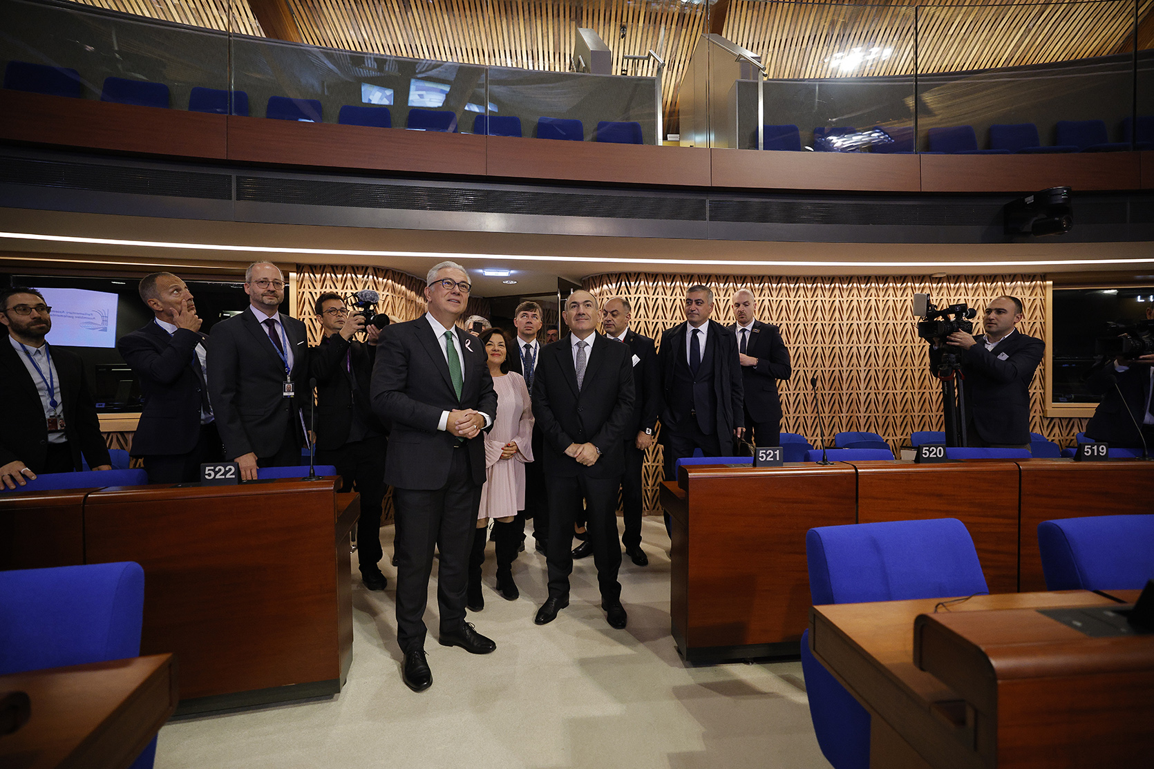 У входа премьер-министра встретили председатель ПАСЕ Русопулос и генеральный секретарь ПАСЕ Деспина Хадзивасилиу, после чего Никол Пашинян сделал запись в «Золотой книге» председателя ПАСЕ и совершил краткую экскурсию.