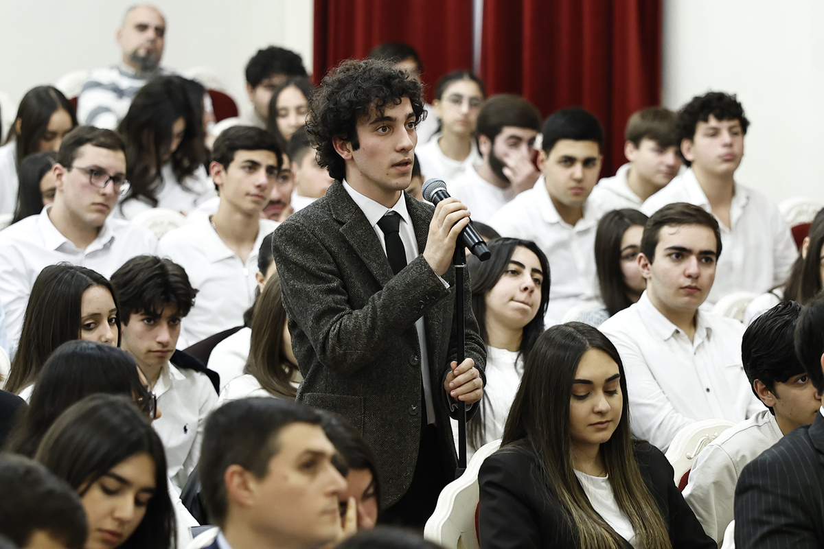 Премьер-министр Никол Пашинян провел встречу с группой студентов и школьников административного района Канакер-Зейтун города Еревана, в ходе которой представил идеологию Реальной Армении.