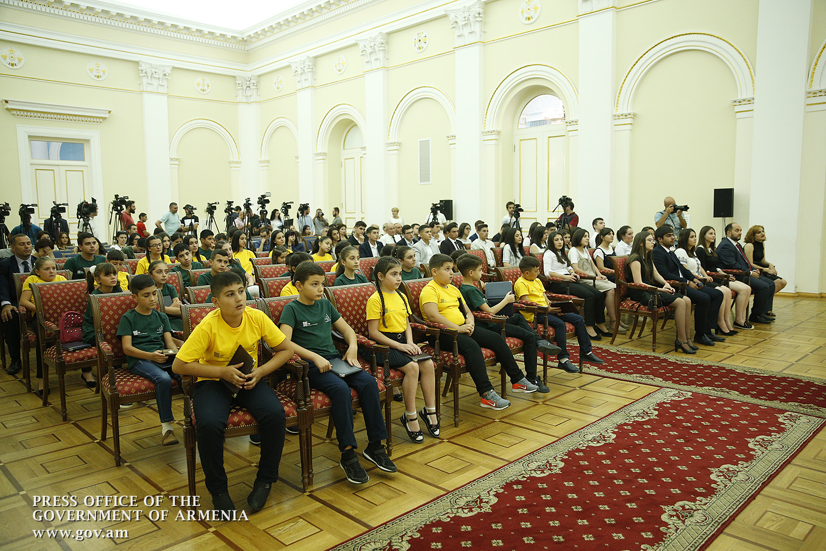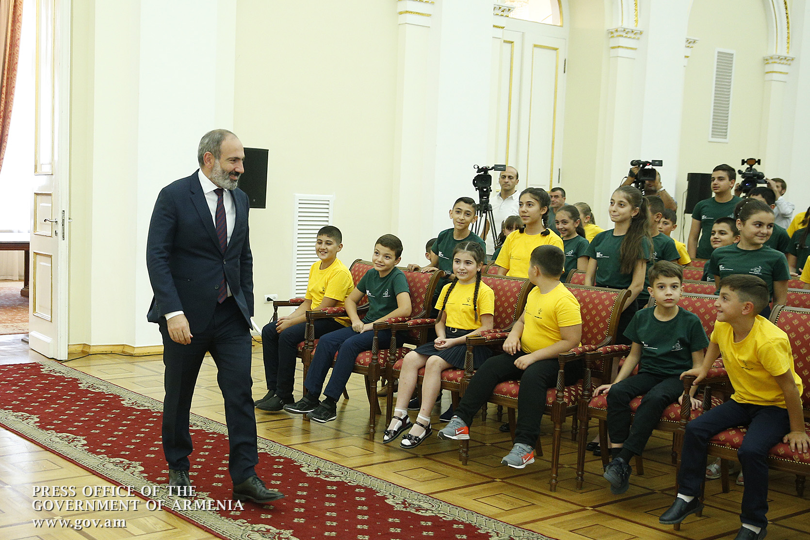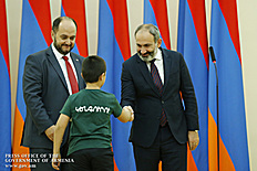 Премьер-министр Никол Пашинян в своей резиденции принял победителей международного математического конкурса “Кенгуру 2018” и конкурса армянского языка “Пчелка 2017”, учеников школ всех областей Армении и Арцаха, набравших в каждой возрастной группе максимальные баллы на конкурсах, а также выпускников школ, которые продемонстрировали высокую успеваемость в 2017-2018 учебном году.
