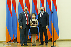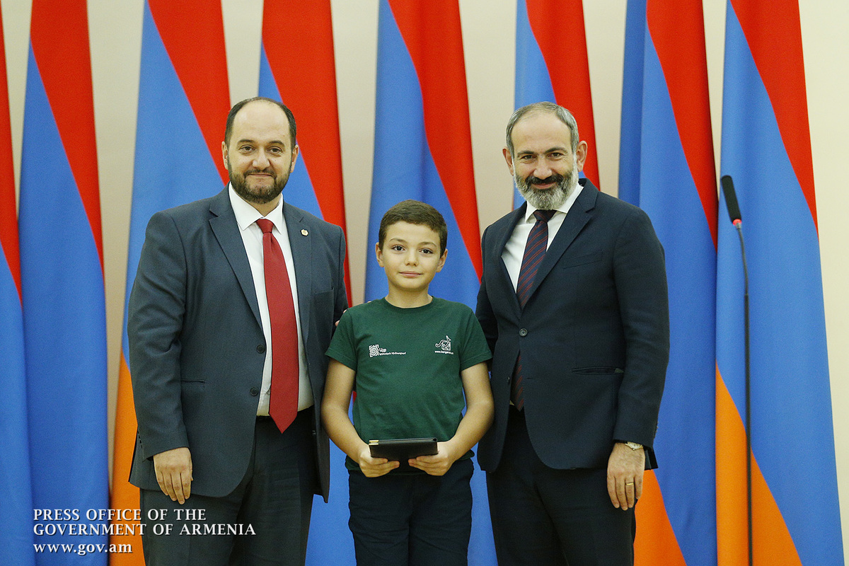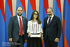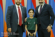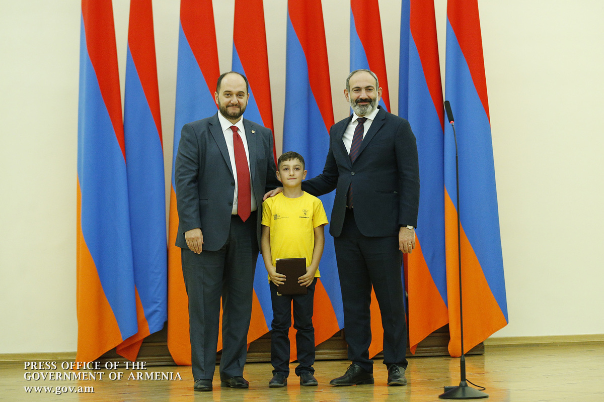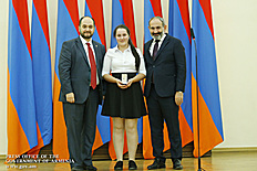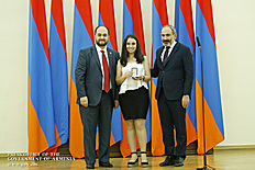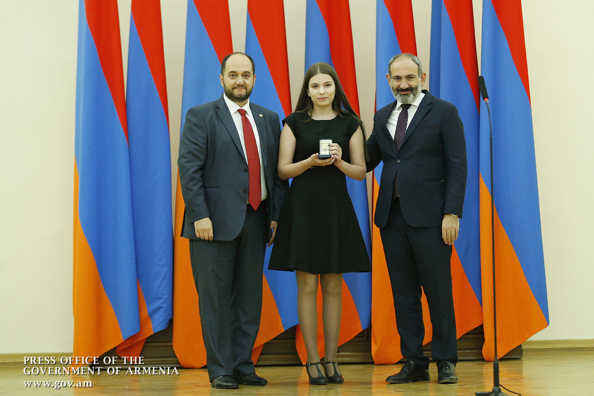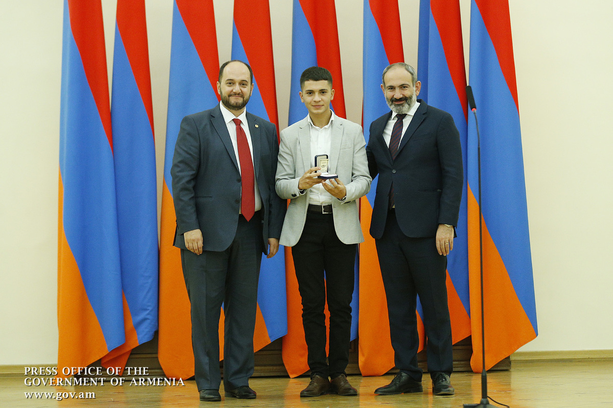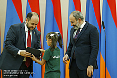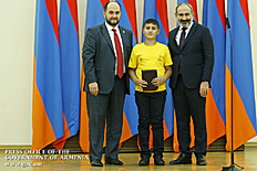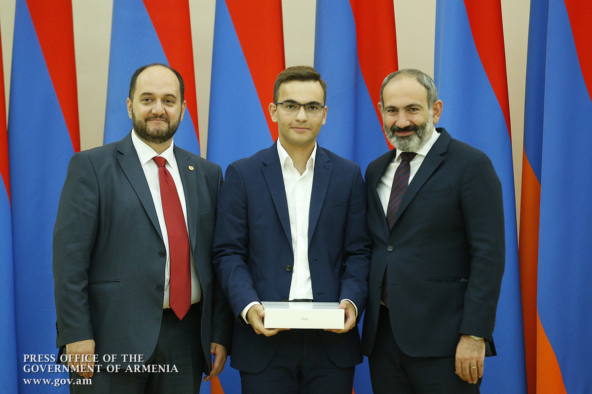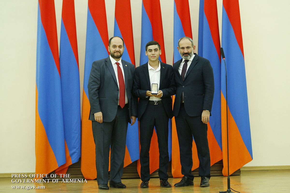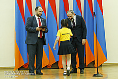 Премьер-министр поздравил школьников с достижениями как в конкурсах в Армении, так и в международных олимпиадах, и вместе с министром образования и науки Армении вручил им награды - медали, сертификаты и подарки.