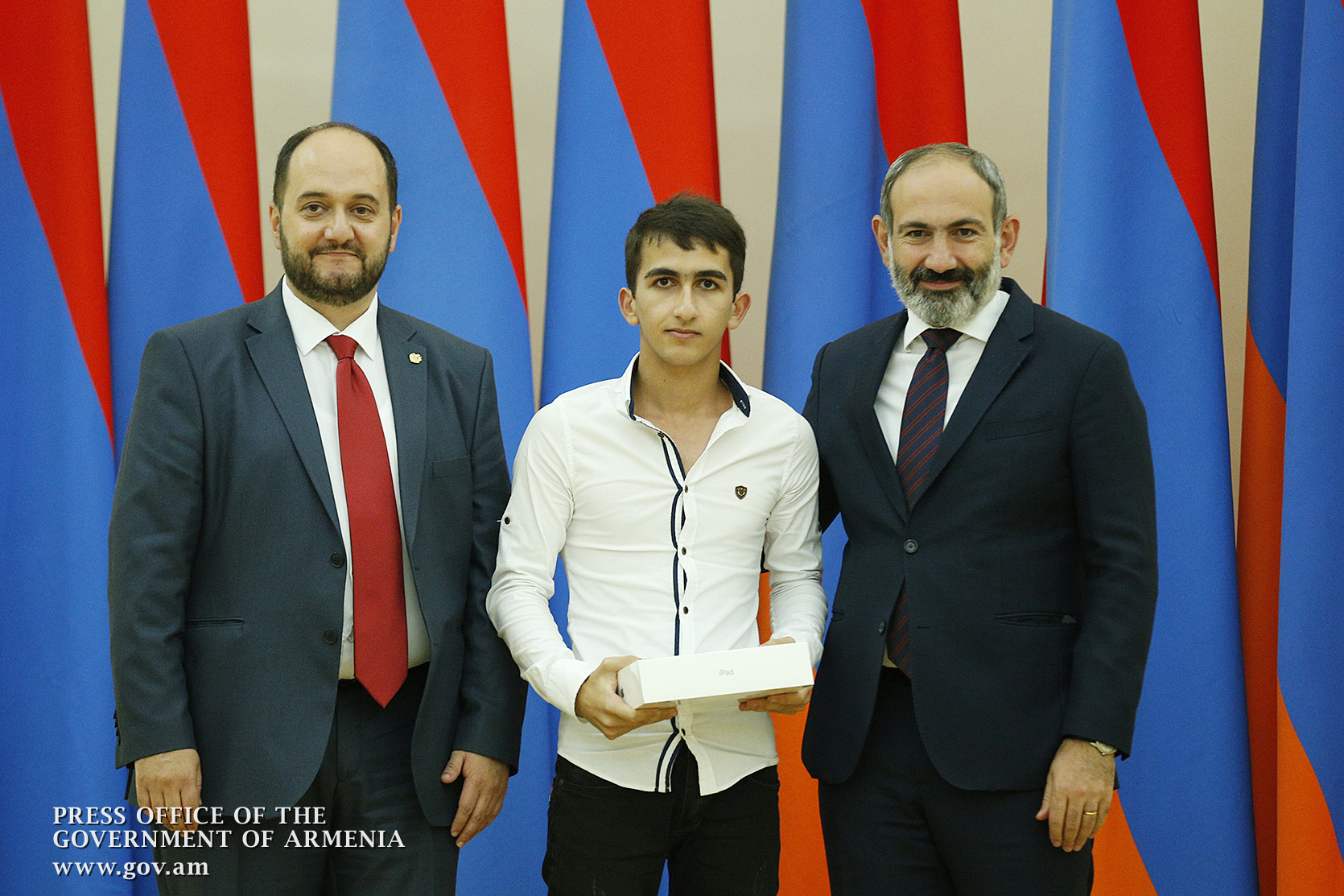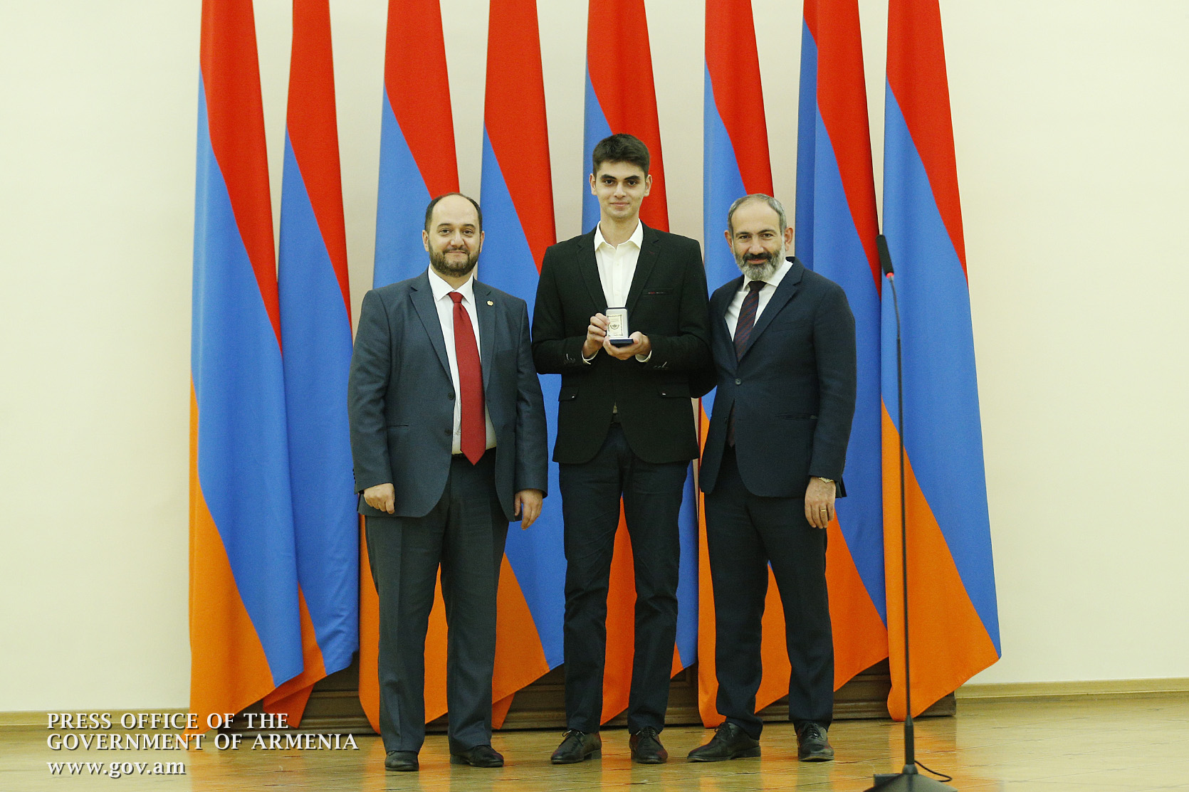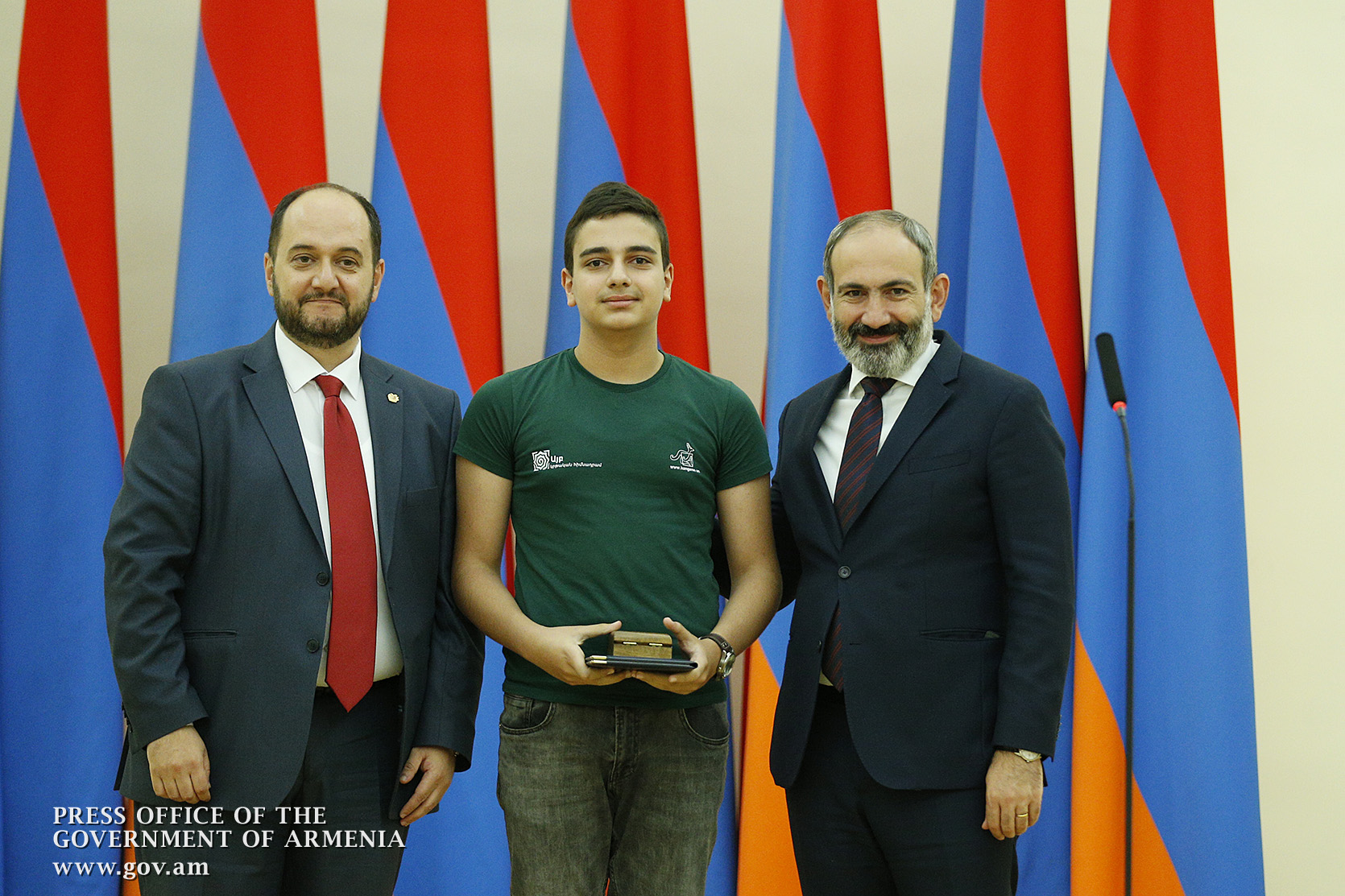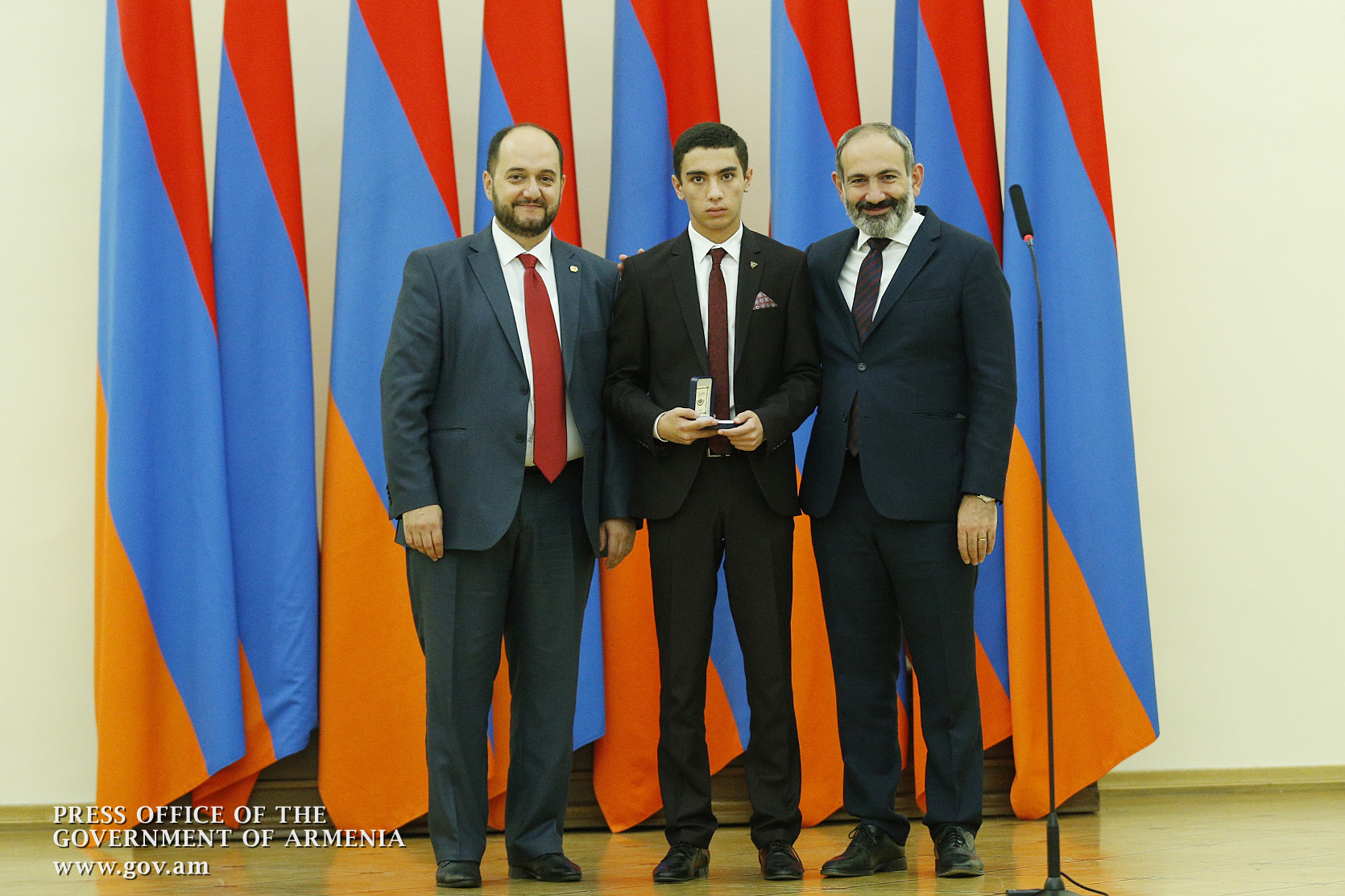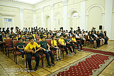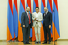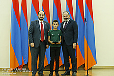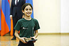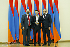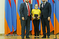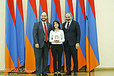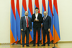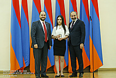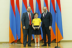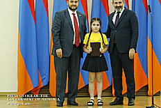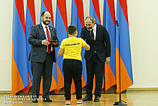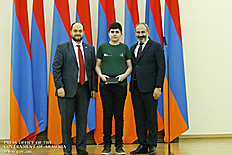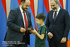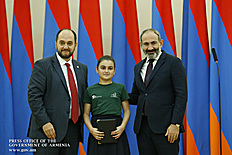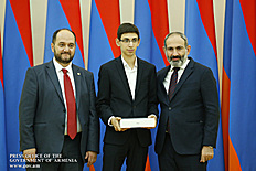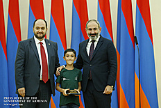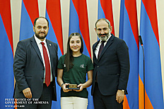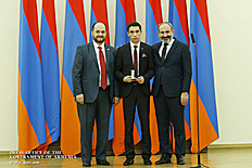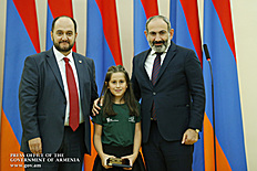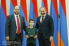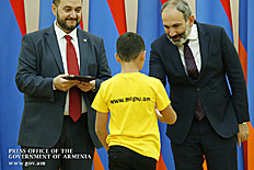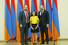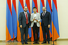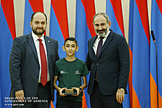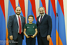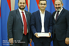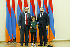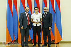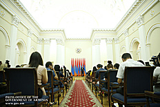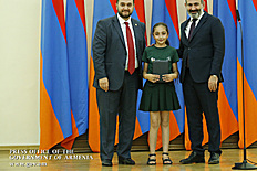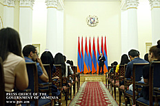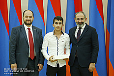 Премьер-министр поздравил школьников с достижениями как в конкурсах в Армении, так и в международных олимпиадах, и вместе с министром образования и науки Армении вручил им награды - медали, сертификаты и подарки.