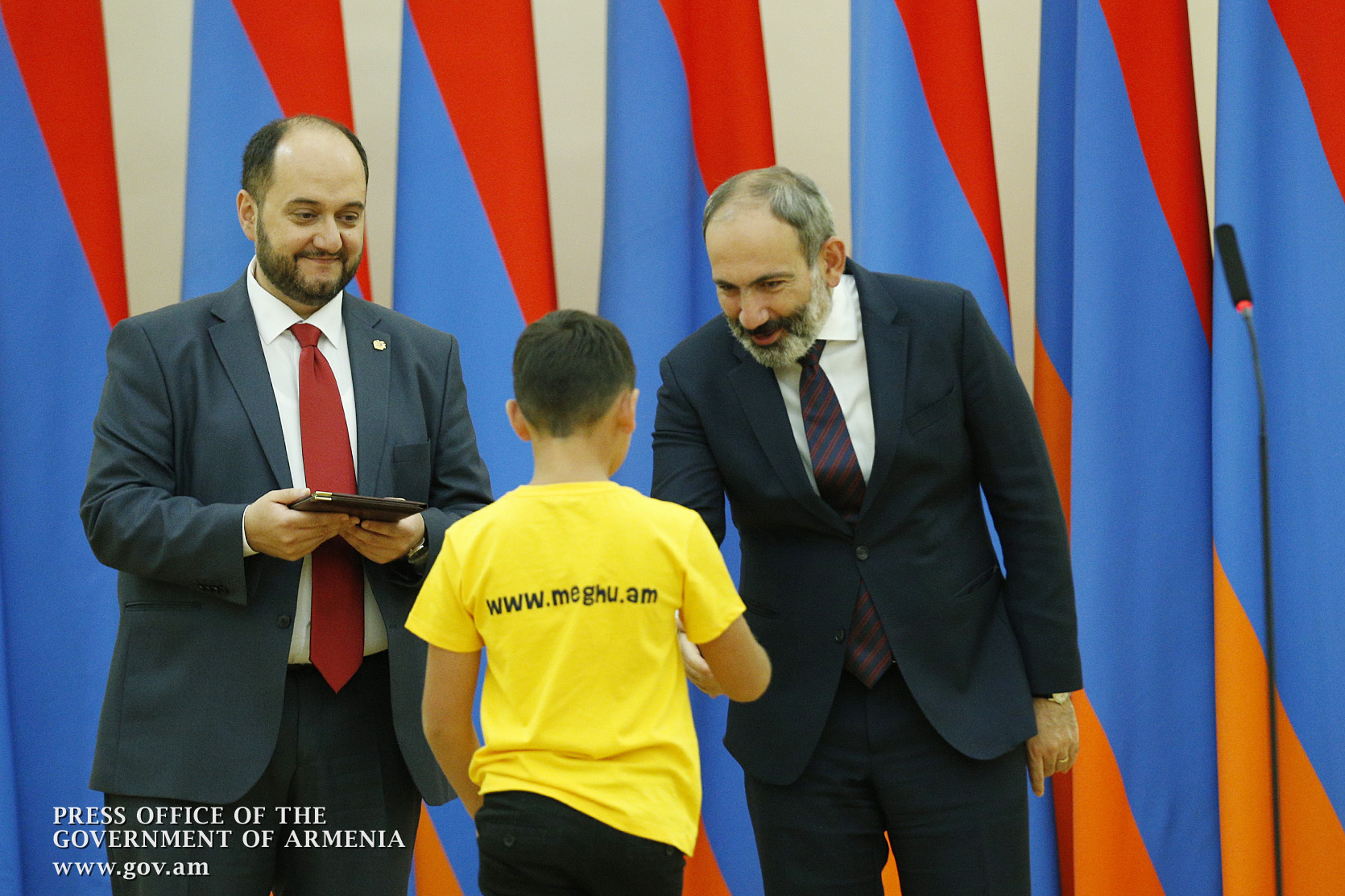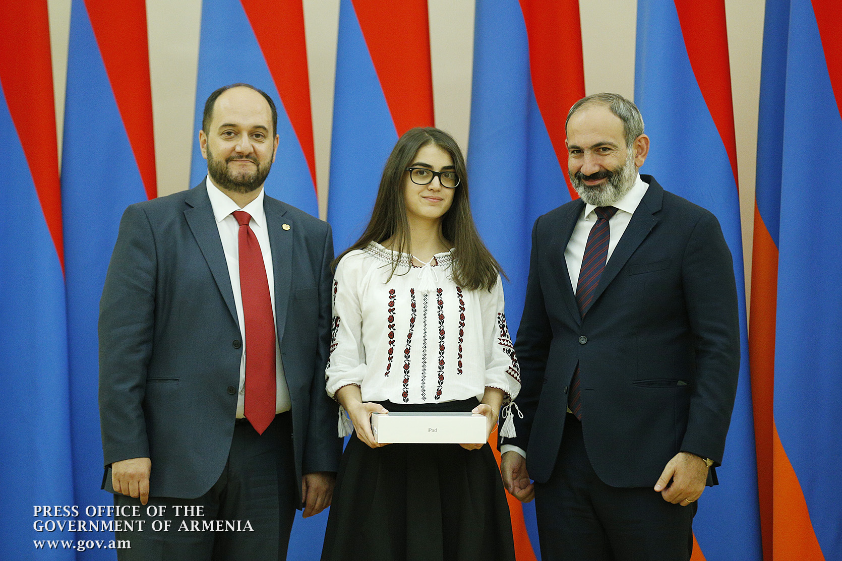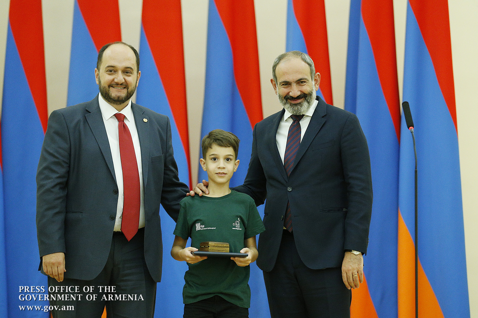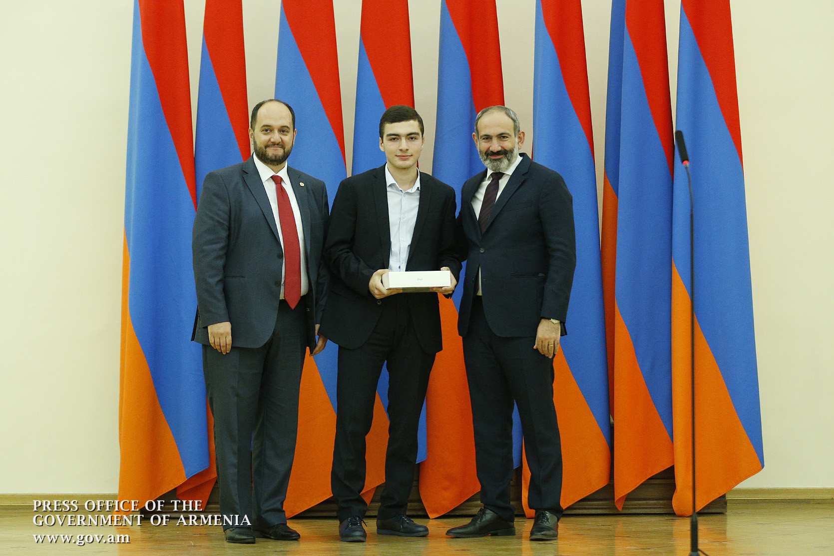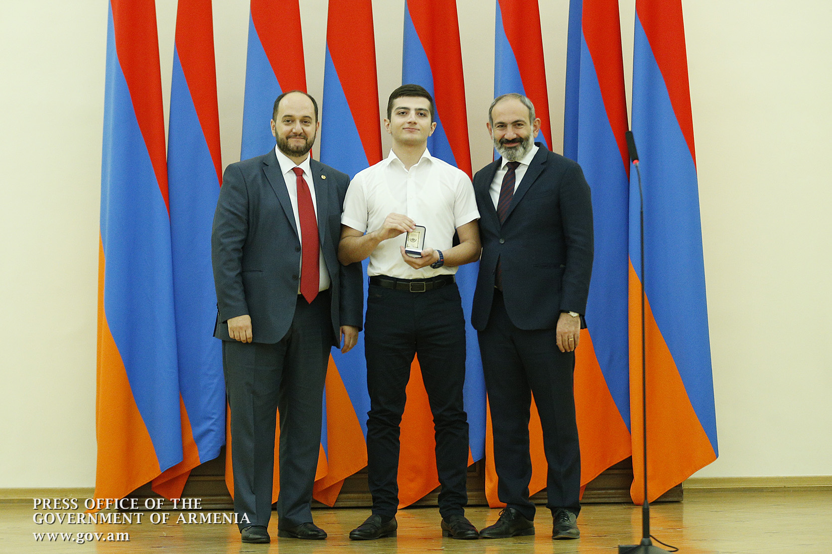 Премьер-министр поздравил школьников с достижениями как в конкурсах в Армении, так и в международных олимпиадах, и вместе с министром образования и науки Армении вручил им награды - медали, сертификаты и подарки.