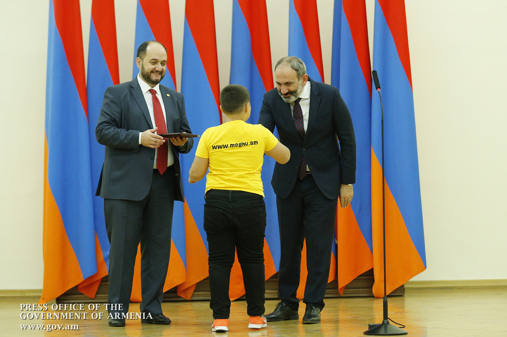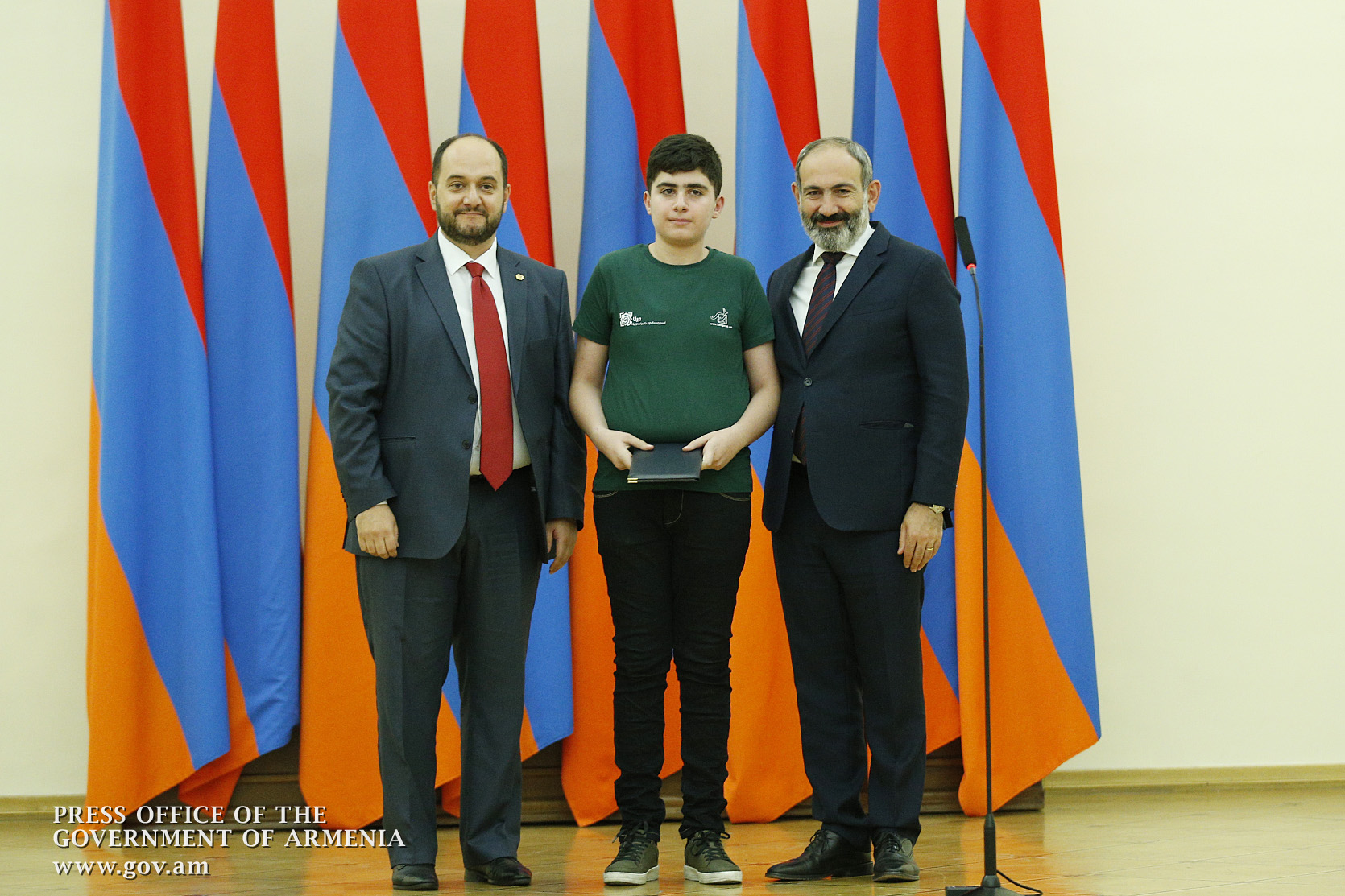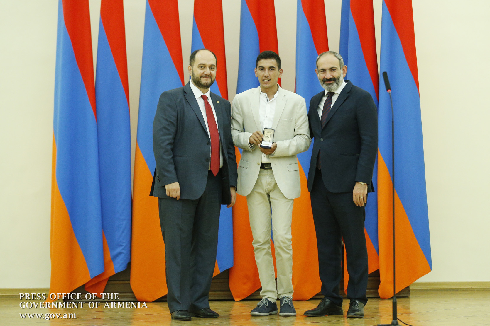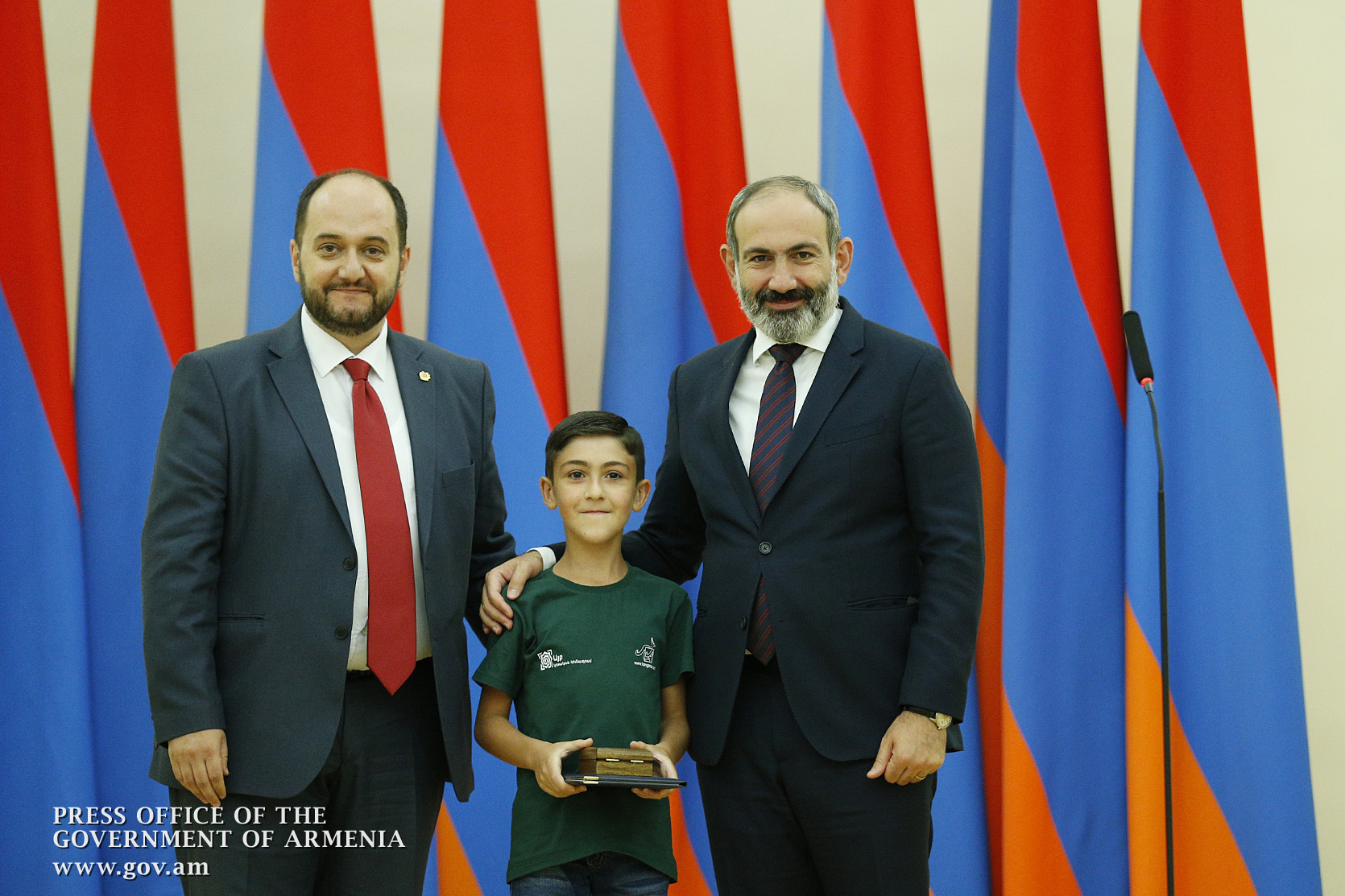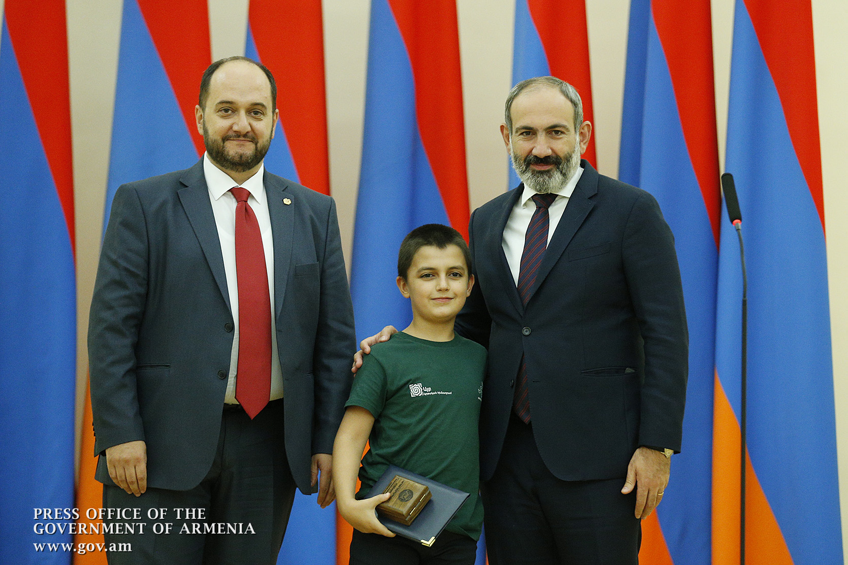 Премьер-министр поздравил школьников с достижениями как в конкурсах в Армении, так и в международных олимпиадах, и вместе с министром образования и науки Армении вручил им награды - медали, сертификаты и подарки.