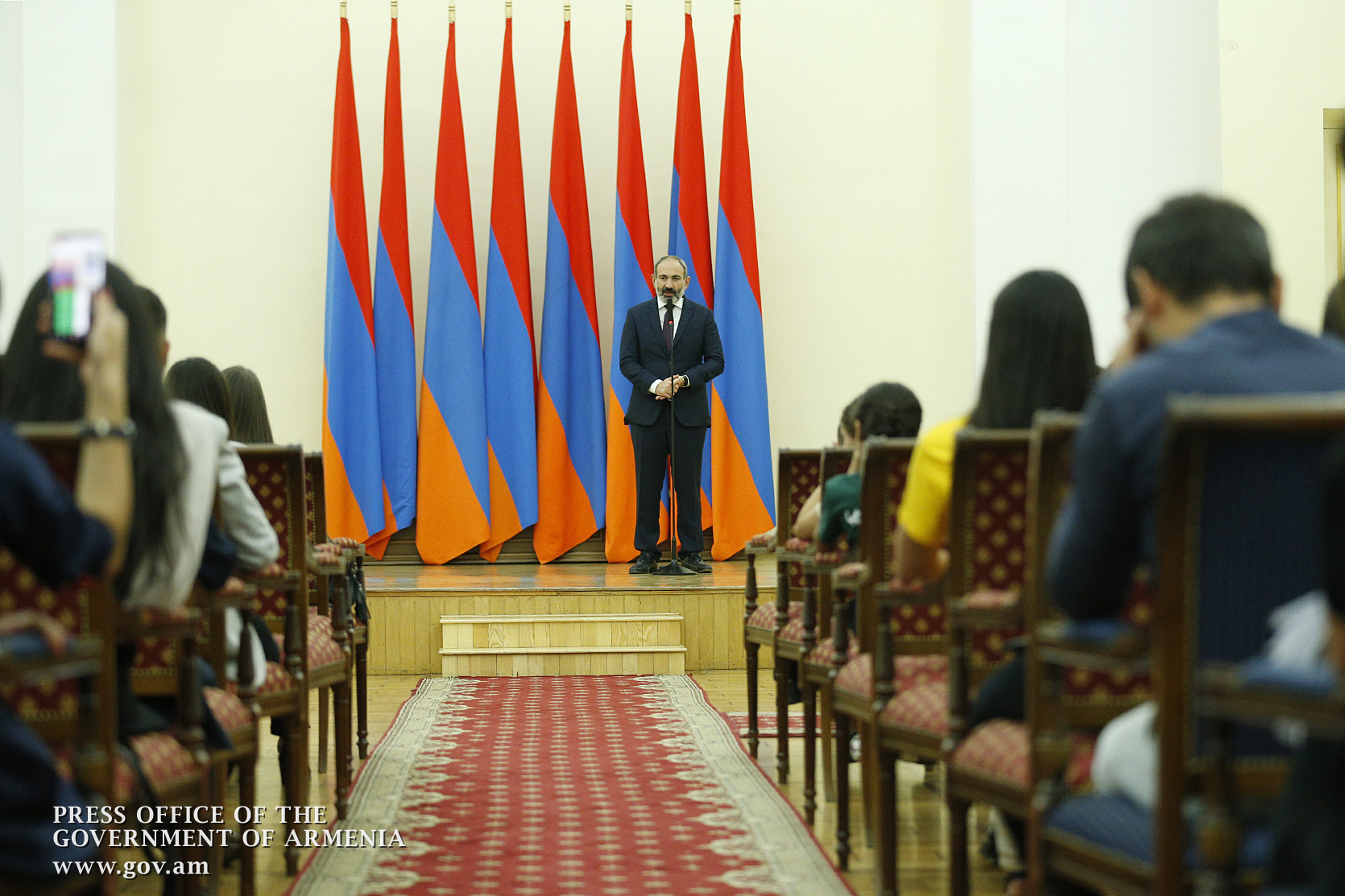 Мы проводим эту церемонию в таких торжественных условиях, потому что вы все уверенными шагами продвигаетесь вперед по пути поиска своей миссии, по пути образования. Здесь зачитывали имена и фамилии каждого из вас и упоминалась фраза “лучший результат”. Надеюсь, что когда мы будем говорить об экономике Армении, мы поставим тире и добавим “лучший результат”, когда мы будем говорить о здравоохранении Армении, мы поставим тире и добавим “лучший результат”, когда мы будем говорить об уровне безопасности Армении, мы поставим тире и добавим “лучший результат”, когда мы будем говорить о росте населения, мы поставим тире и добавим “лучший результат”, когда мы будем говорить о развитии технологий в Армении, мы поставим тире и добавим “лучший результат”, когда мы будем говорить об уровне счастья человека и гражданина, мы поставим тире и добавим “лучший результат”, когда мы будем говорить о независимой судебной системе, свободной прессе, демократии, законности, правах человека, лучшем управлении, верховенстве закона, мы поставим тире и добавим “лучший результат”.