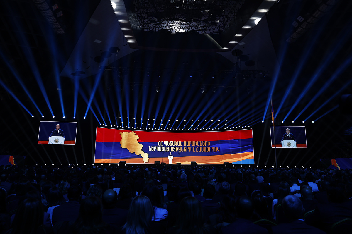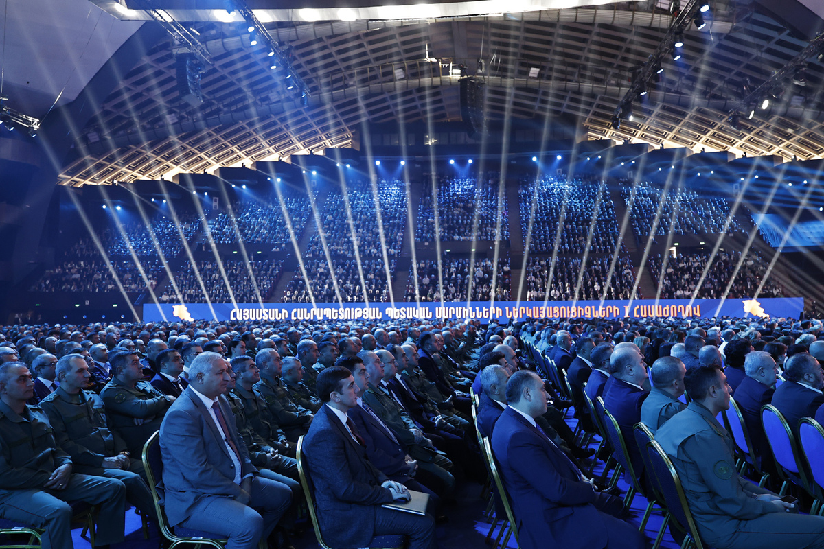 В Спортивно-концертном комплексе имени Карена Демирчяна состоялась Первая Конференция представителей государственных органов Республики Армения. В мероприятии приняли участие президент Республики Армения Ваагн Хачатурян, премьер-министр Никол Пашинян, председатель Национального Собрания Ален Симонян, председатель Конституционного суда Арман Диланян, представители органов законодательной, исполнительной, судебной власти, правоохранительных органов, органов территориального управления и местного самоуправления, независимых и автономных органов, спецслужб, военнослужащие, сотрудники полиции, спасатели, работники образовательных, культурных и медицинских учреждений, студенты, учащиеся — более 7 тысяч человек.